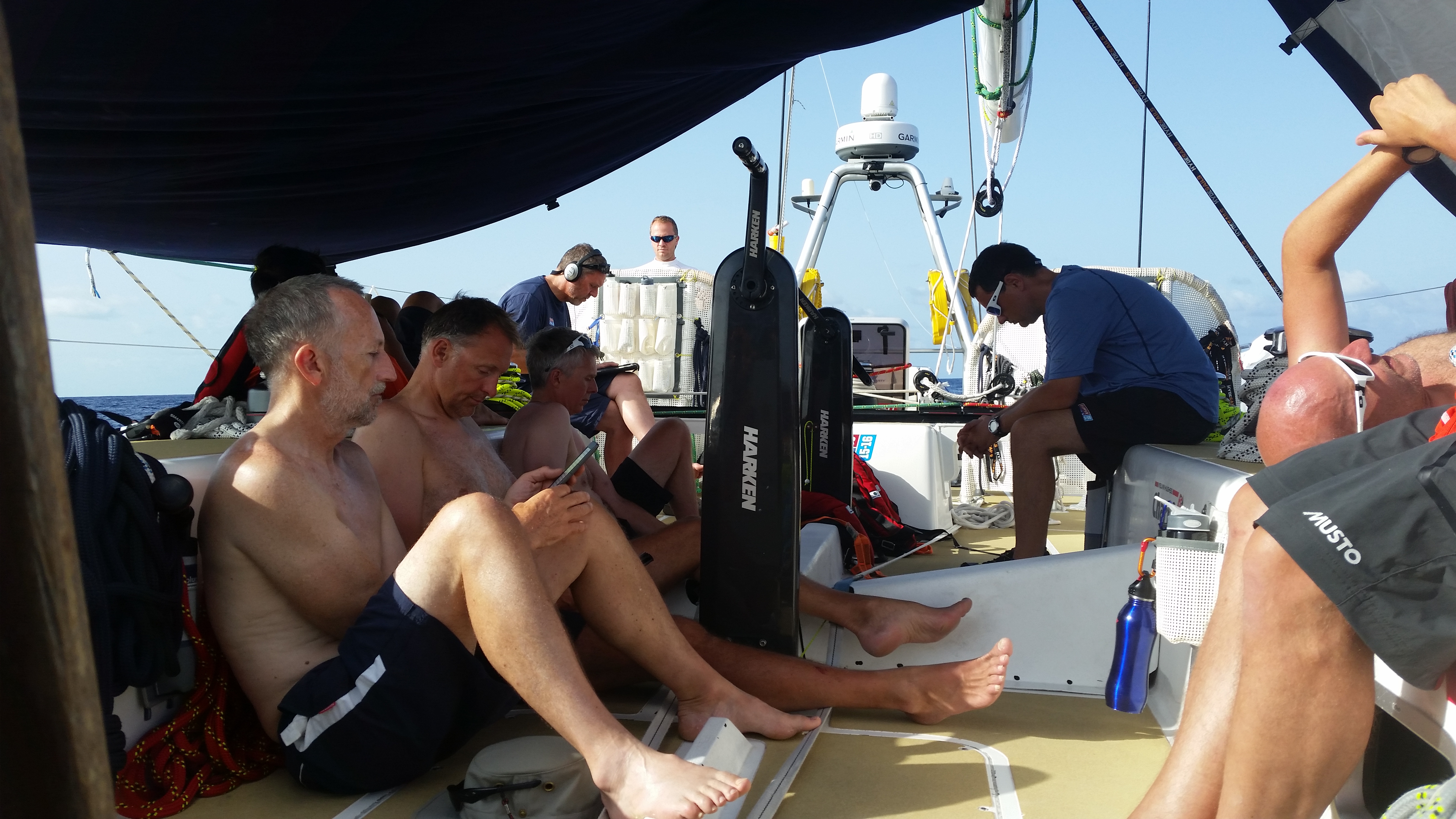 I thought I would have a hard time with 22 people on board. We ended up hot bunking.. I get the bunk during my bunk buddies watch time and he gets it during mine. We just switch out sleeping bags as we get up. By the end of leg 1 I had put my sleeping bag away and was just using a sheet. Too hot! Chris was a super bunk buddy! And other than when we ate either lunch or supper on deck together, you really didn’t notice all the people.